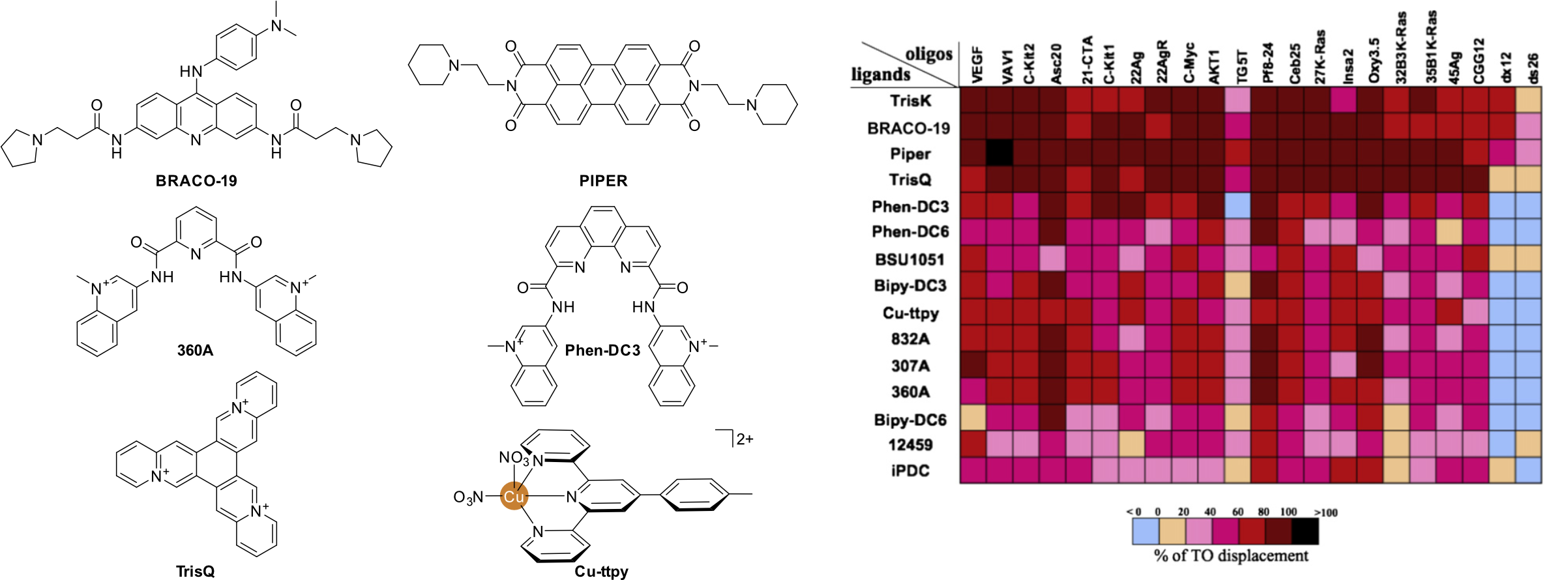 1.3.2 Ligands oligohétéroaryles acycliques qui discriminent fortement entre diverses topologies G4 en ciblant les sillons