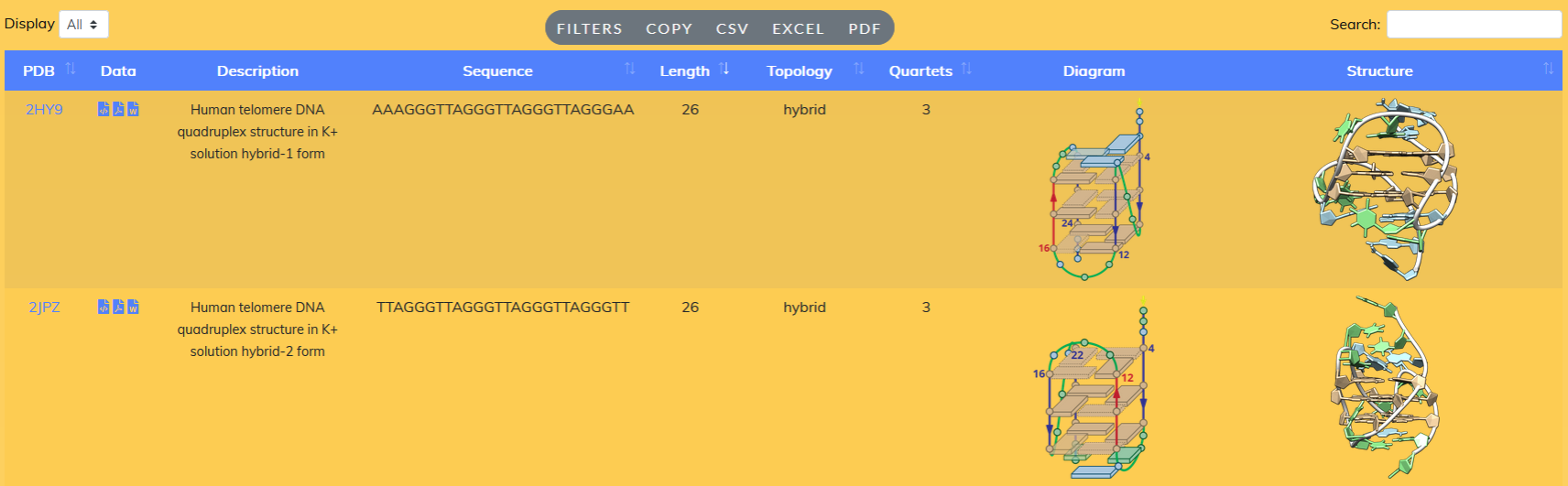 5.5 Base de données d’acides nucléiques G-quadruplexes