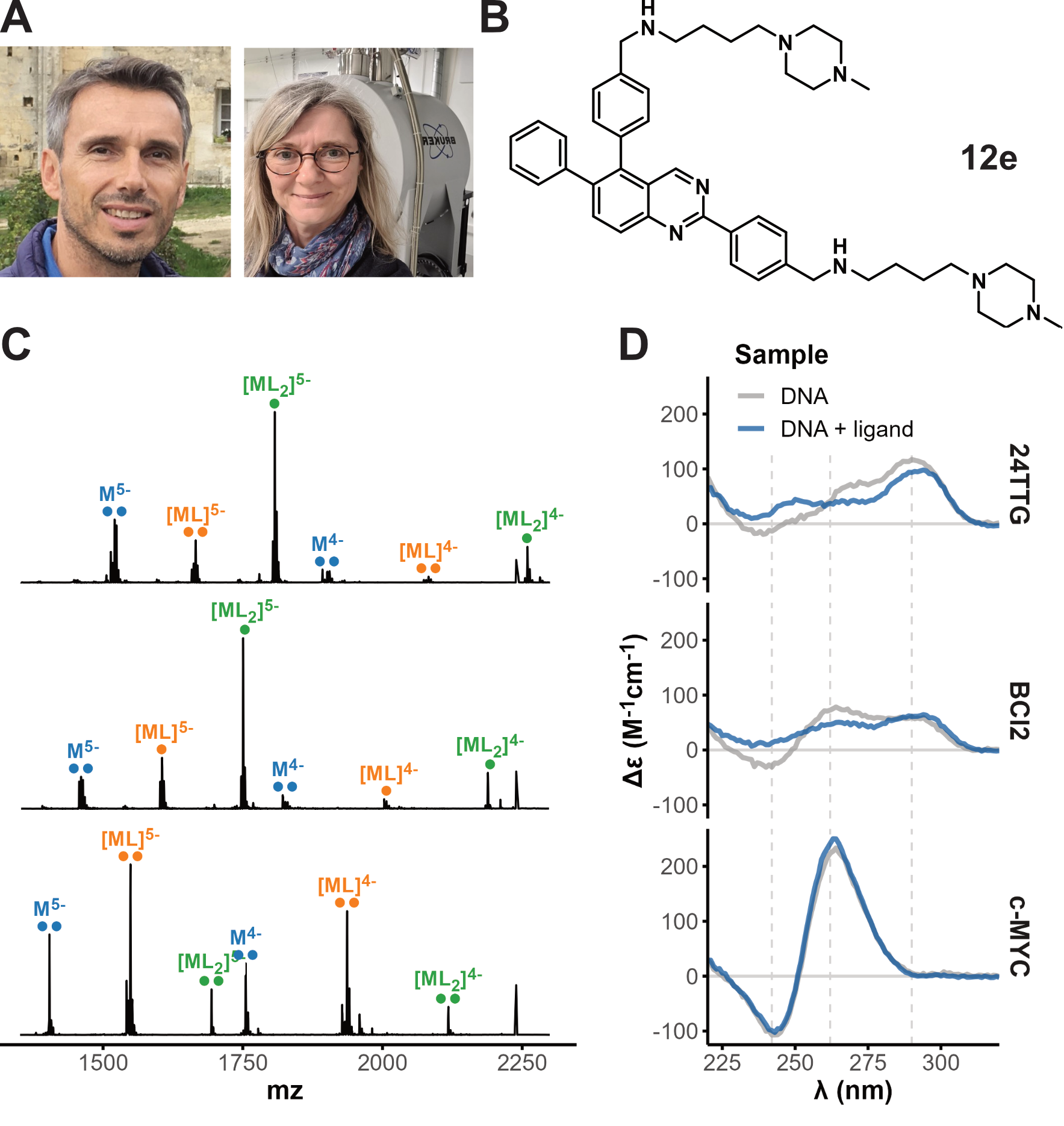 Finalement, cette étude illustre le potentiel de la spectrométrie de masse native pour cribler et caractériser des ligands de G4 sans cherry picking et sa complémentarité avec des techniques structurales de plus hautes résolutions. Sur une note plus personnelle, je suis très friand d’études combinant plusieurs techniques orthogonales pour étudier un système d’intérêt, et je trouve très drôle qu’après des années à concevoir rationnellement ou cribler des ligands de G4s, on en trouve un par hasard.