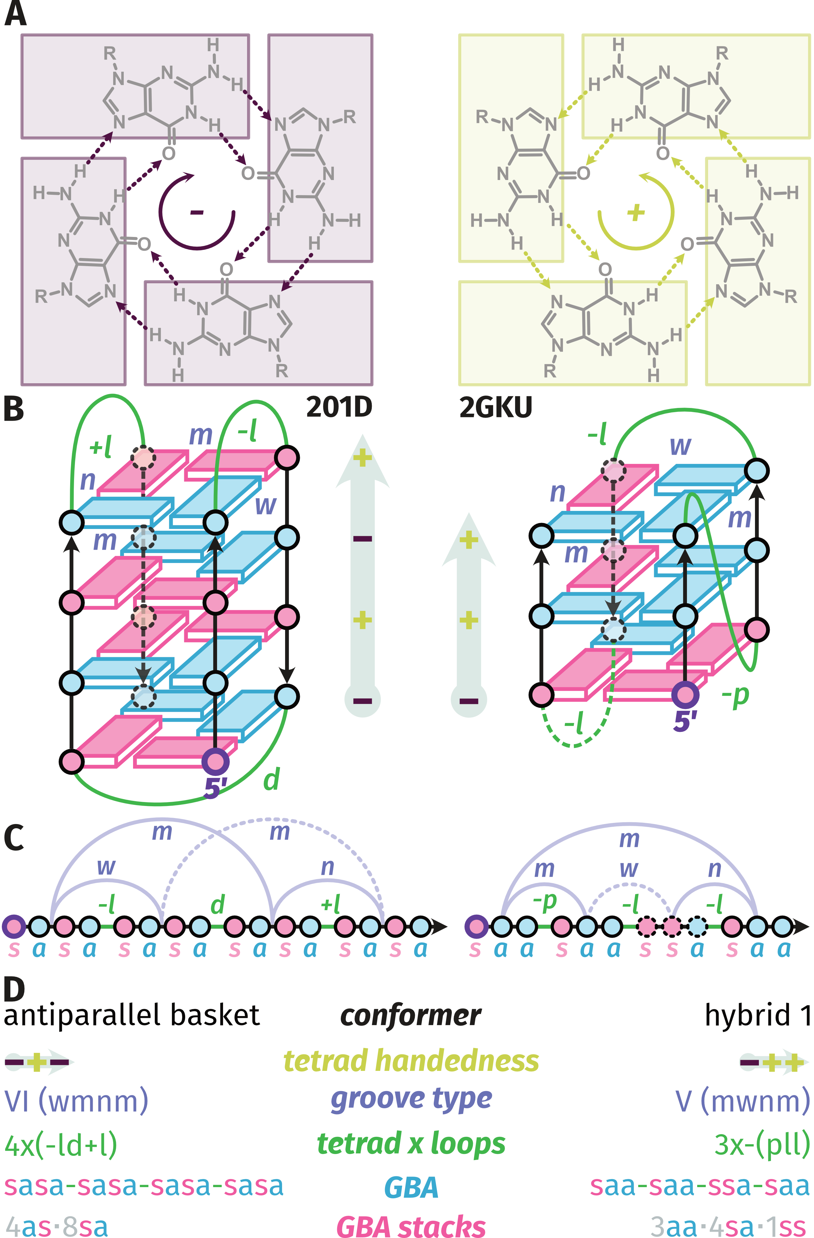 Ce manuscrit présente de nombreuses méthodes permettant de caractériser des structures d’acides nucléiques, leurs dynamiques et leurs interactions. Un sujet que je n’aborde pas, du fait de mon incompétence totale sur le sujet (pour le moment), est la prédiction de structures à partir d’une séquence, comme le permet AlphaFold par exemple. Avec l’expérience, on peut prédire si une séquence peut former un G4, et même proposer une topologie en suivant des règles simples,8 mais cela relève plus de la divination que de la science. Et quid de structures vraiment bizarres comme le complexe RKEC1·dopamine?
