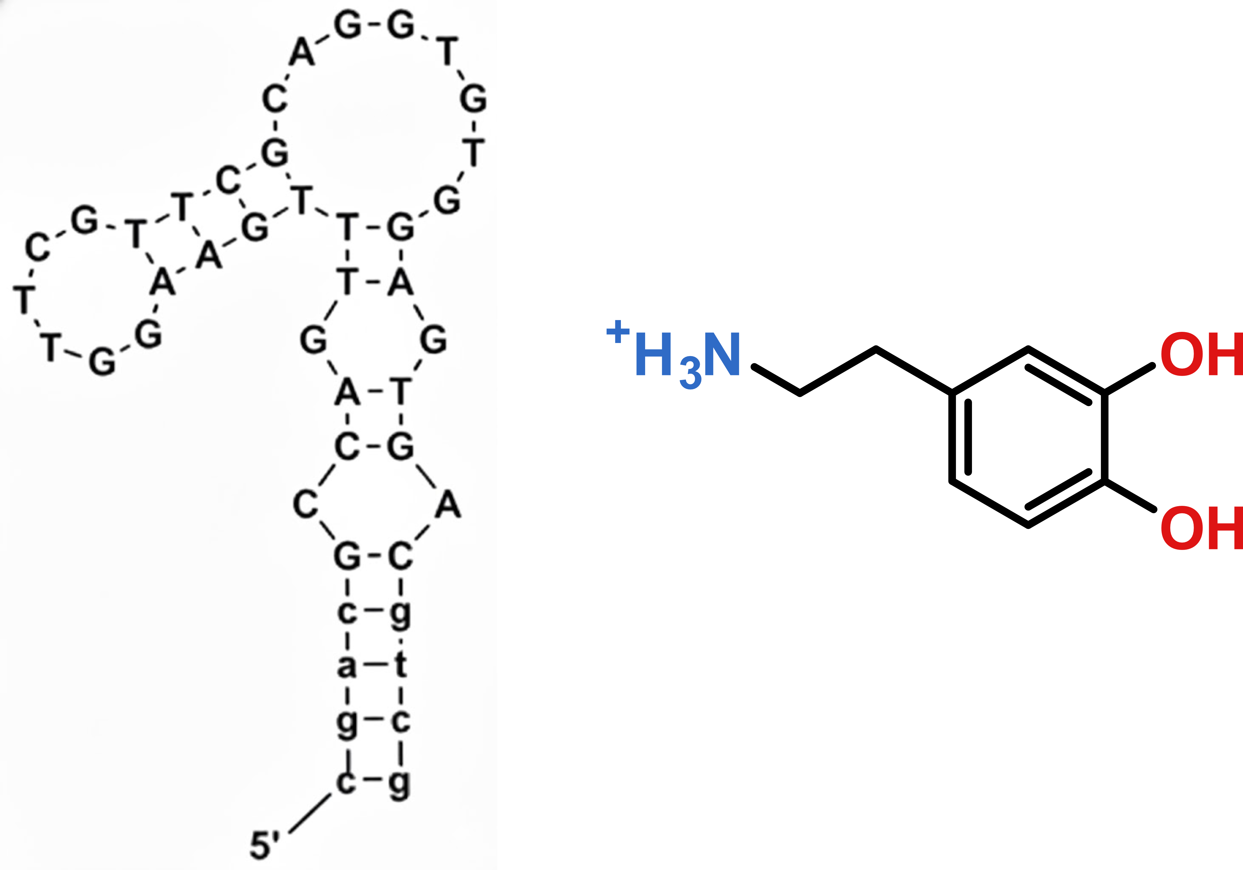 Les structures secondaires bizarres, sans se limiter aux G4s. J’illustrerai cela avec l’exemple de la résolution de la structure d’un complexe aptamère d’ADN RKEC1·dopamine (Section 5.6.3)